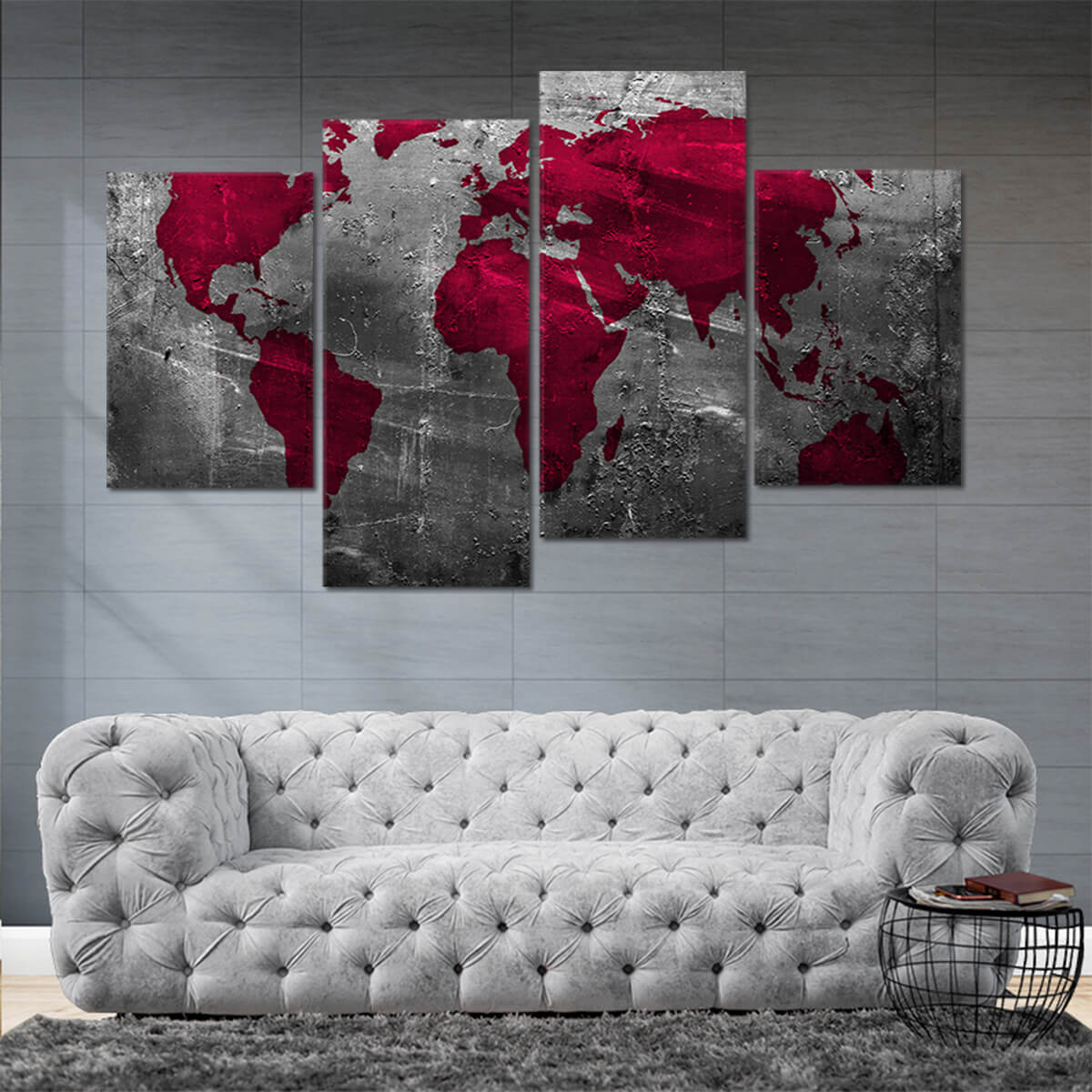 Red Aged World Map Canvas Wall Art Set l by Stunning Canvas Prints